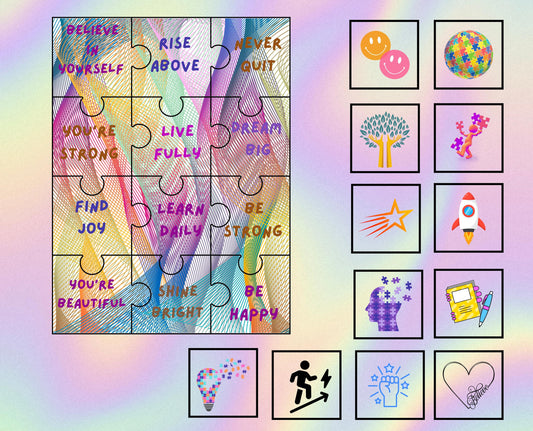 Motivational Quilt Panel, Cotton Puzzle Blocks, Rainbow Fabric