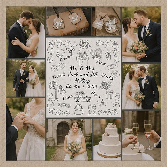 Personalized Wedding Quilt Panel: Mr. & Mrs. Cotton Fabric, Multi-Gender