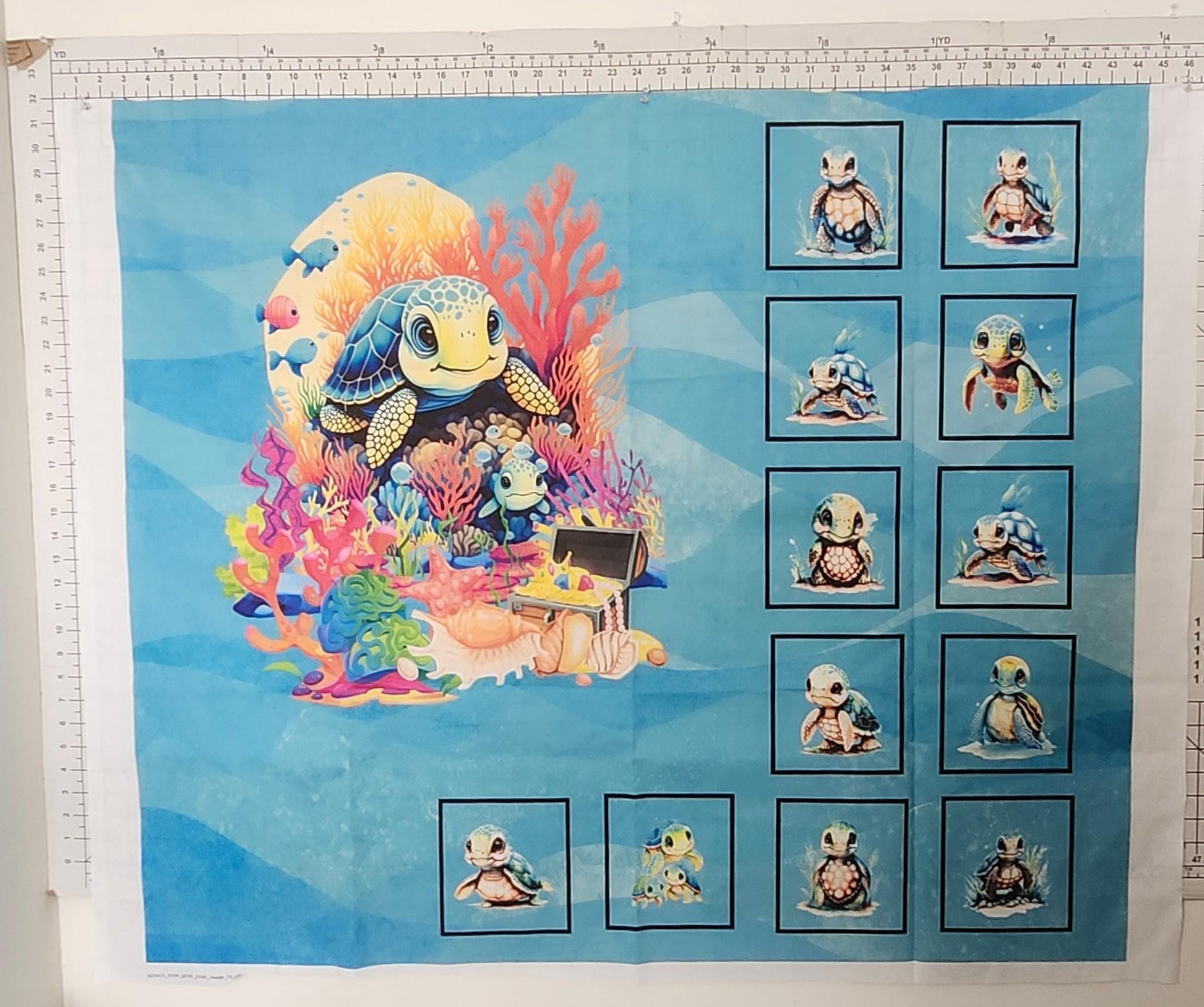 Baby Turtle Quilt Panel & Blocks, Childs Room Wall Art, DIY Fabric Book, Quality Quilt Cotton