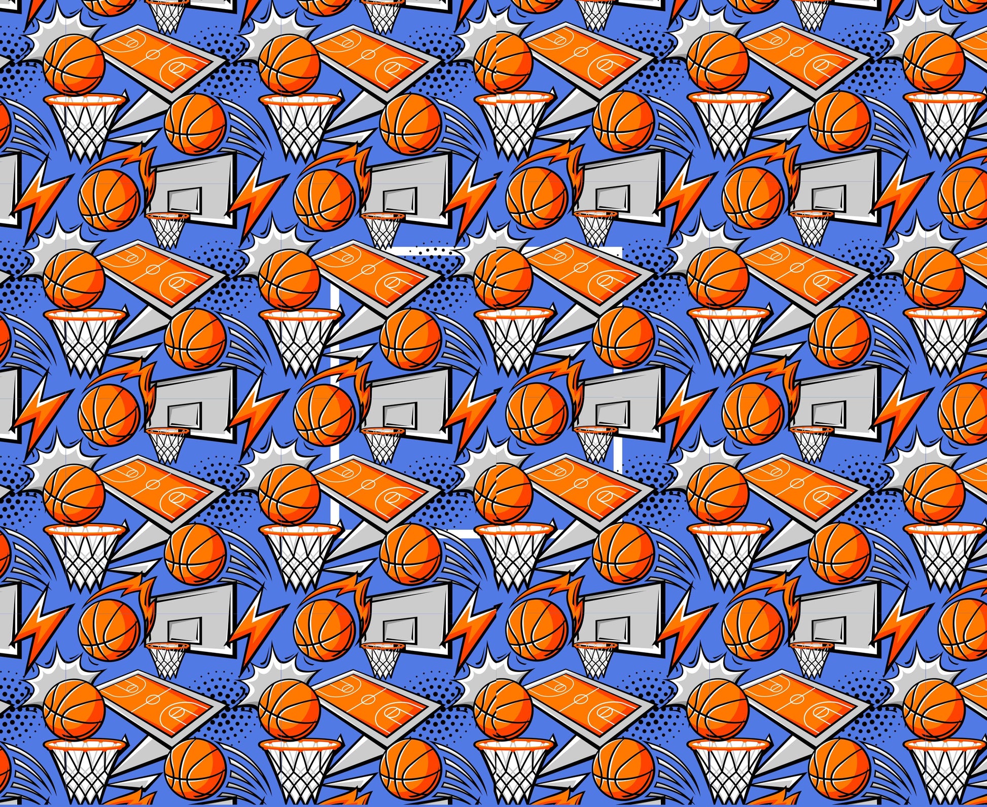Colorful Basketball quilt panel and blocks all on one piece of fabric.