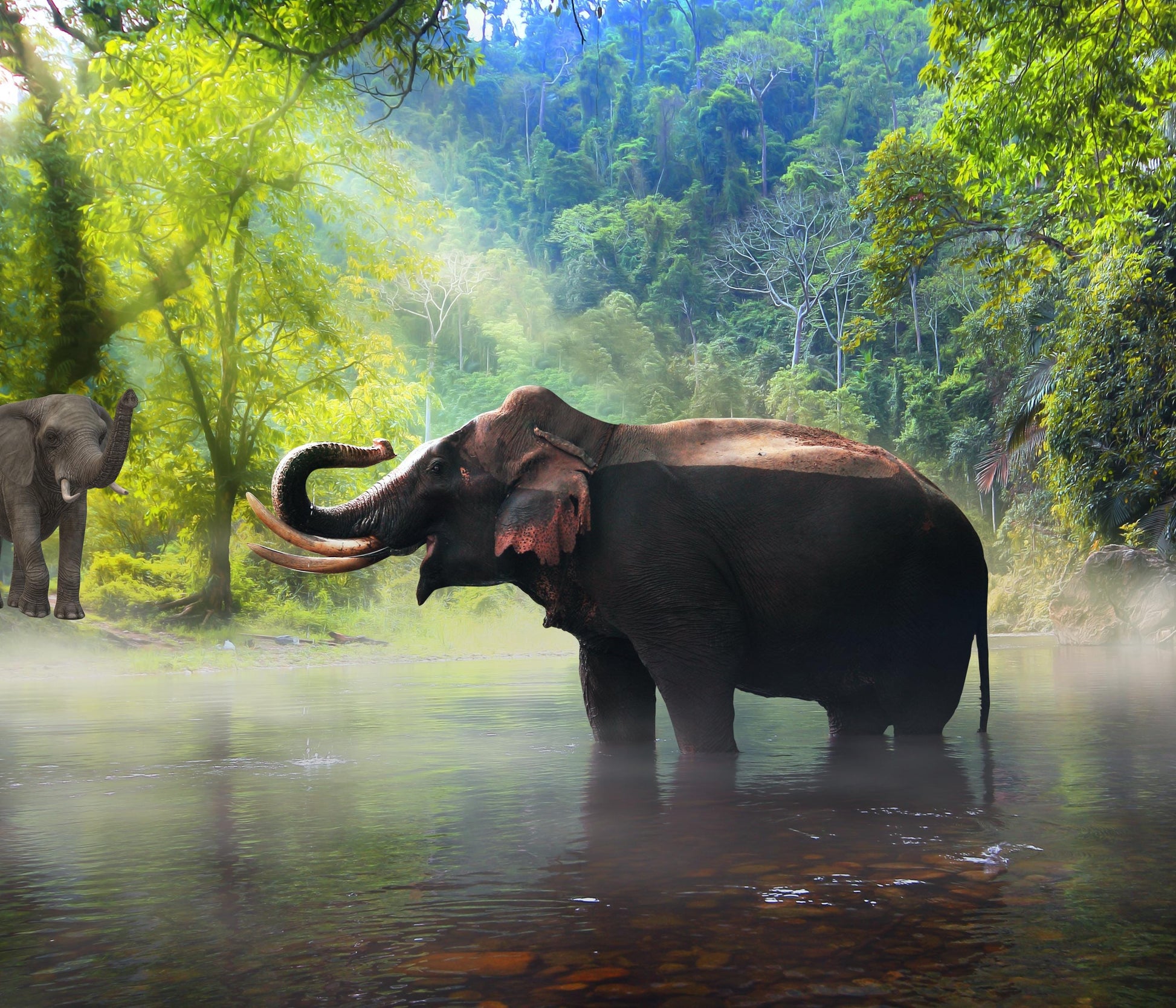 Elephant Fabric Panel: Cotton Quilt Squares, Jungle/Grassland Scenes
