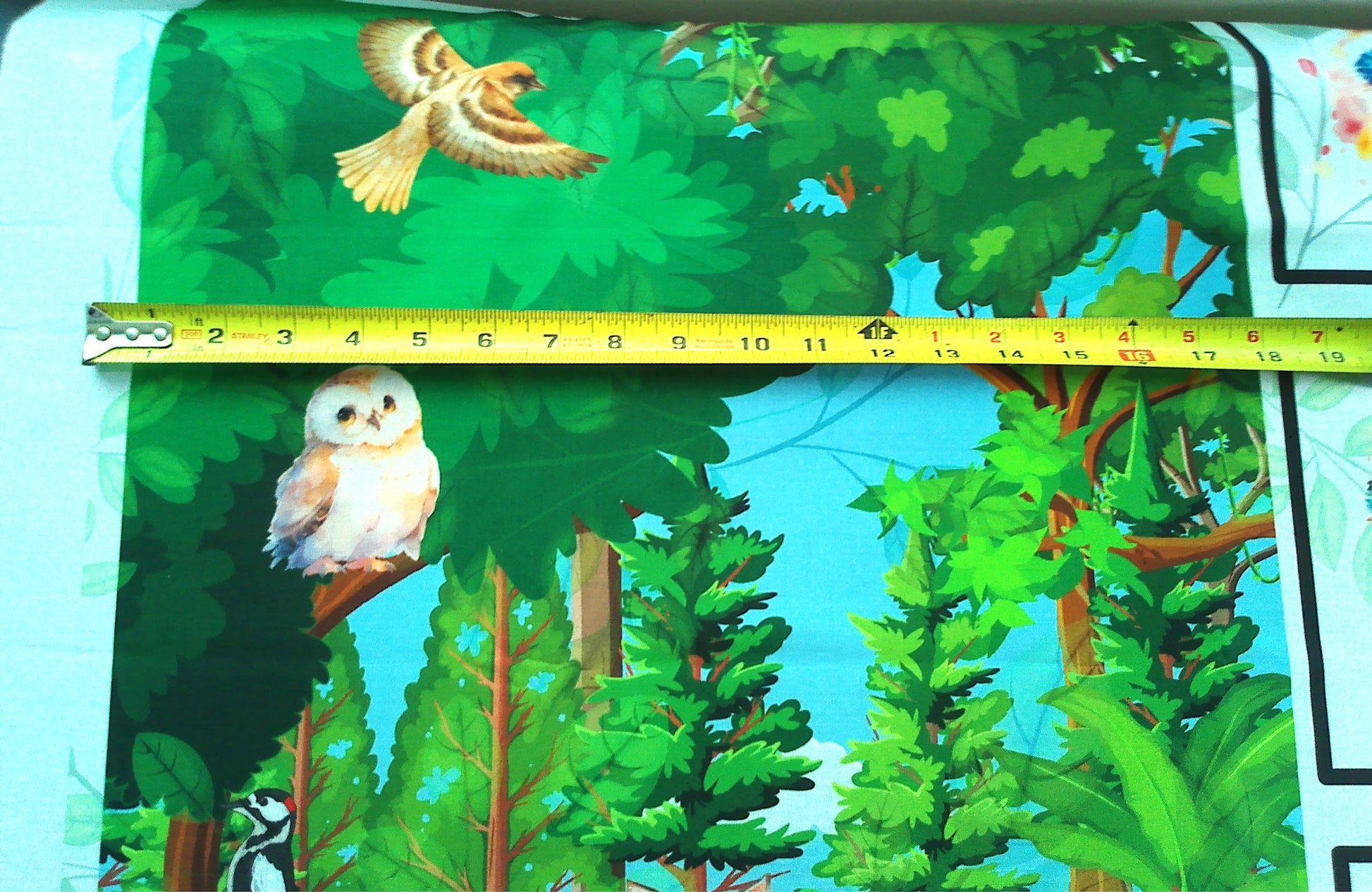 • Designs are printed on a piece of fabric measuring 36” x 44”. See pictures with fabric on measuring mat. Please reach out if you have questions.