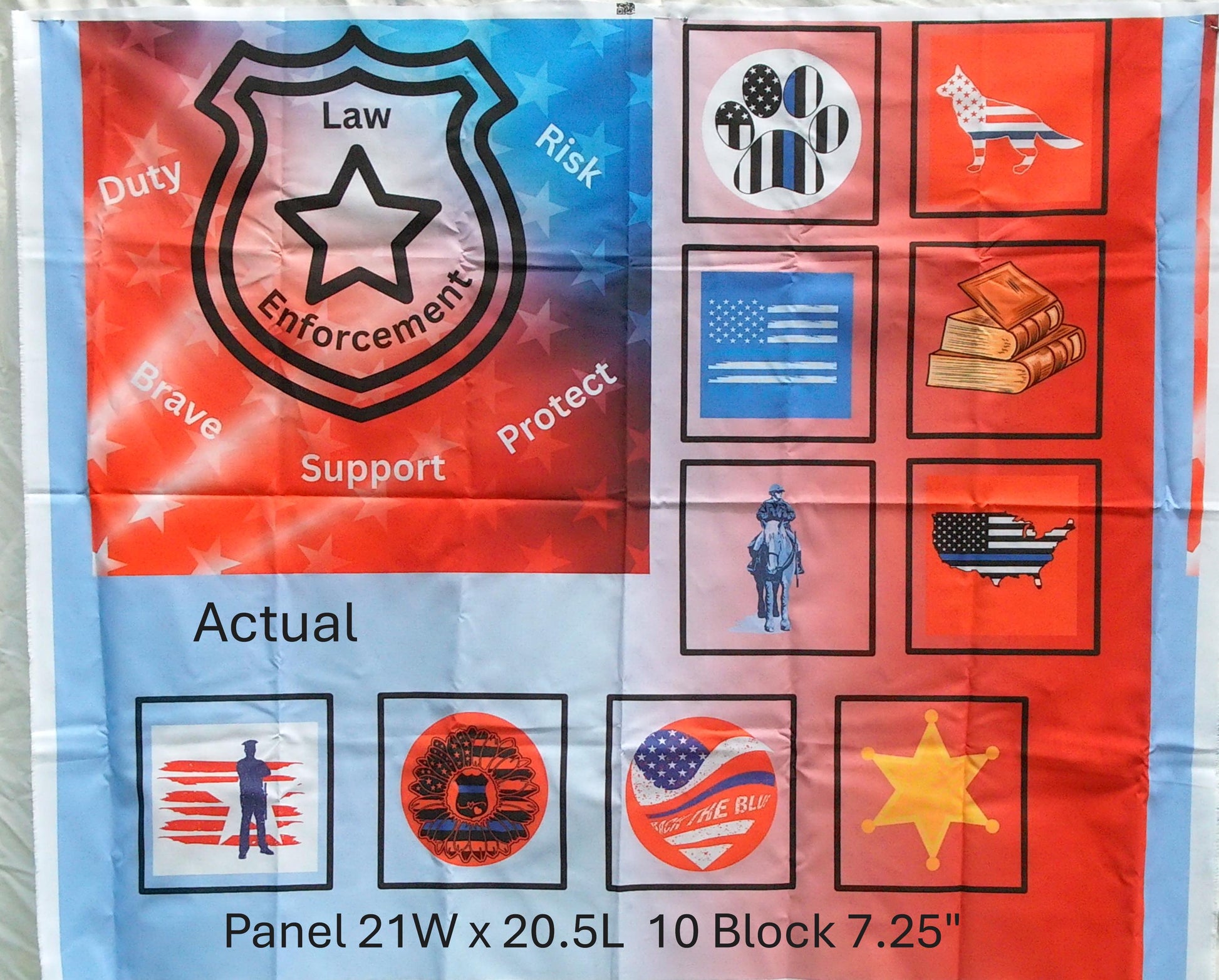 All first responders need out gratitude. Here is a start. You are buying a unique design on one piece of fabric which contains a panel and 12 blocks.