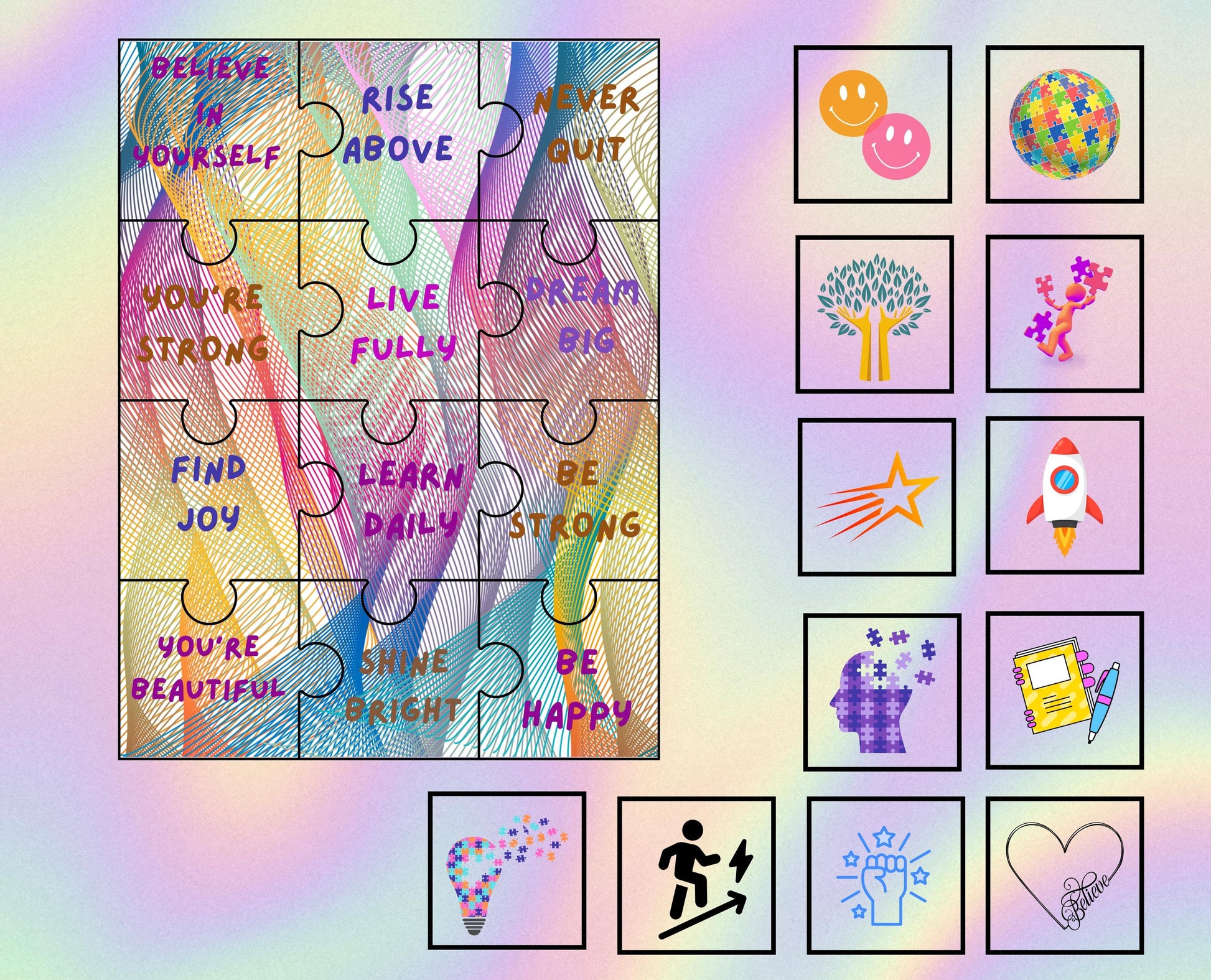 Motivational Quilt Panel, Cotton Puzzle Blocks, Rainbow Fabric