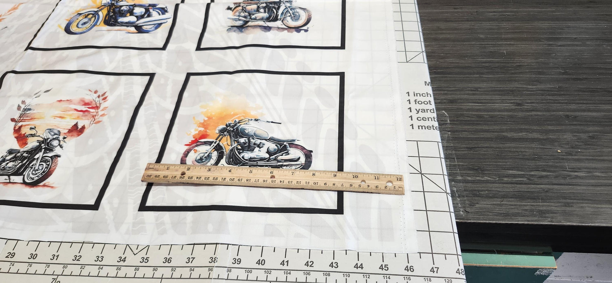 Unique motorcycle panel and block combo all on one piece of fabric.