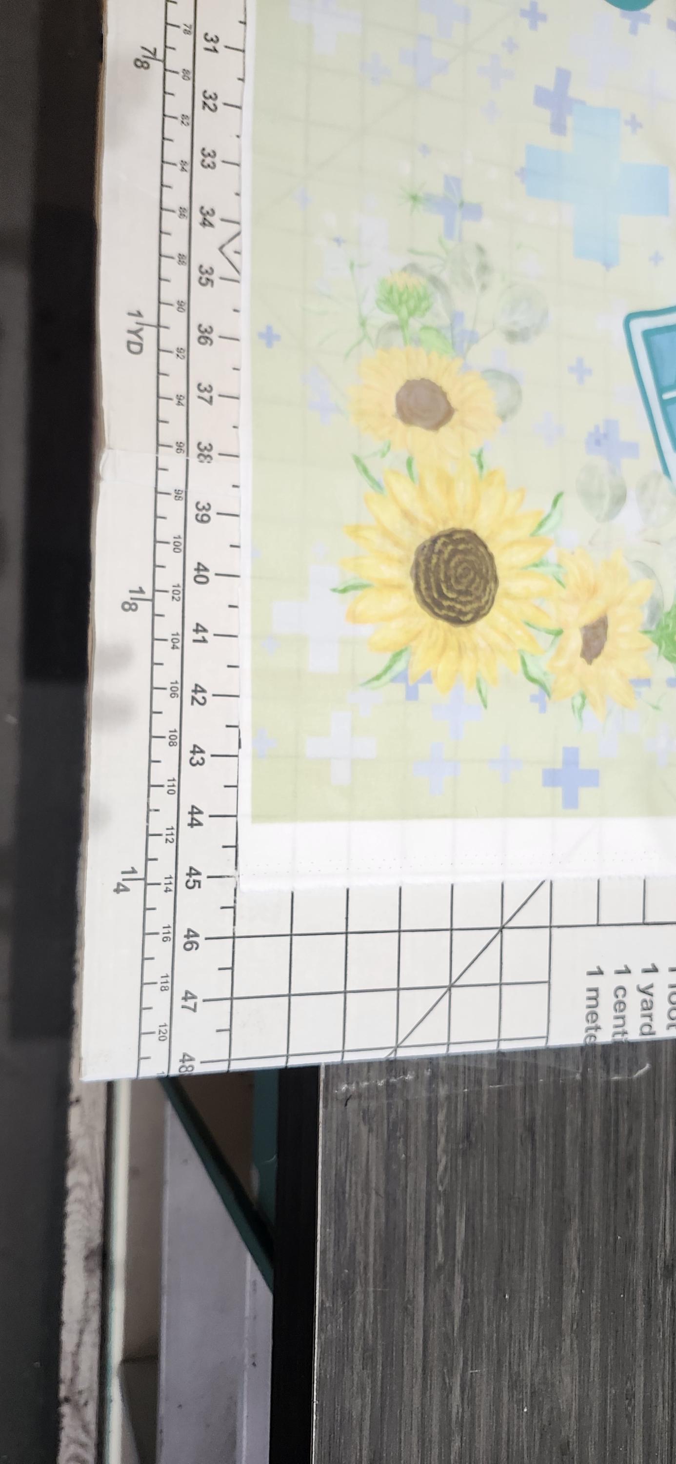 • Designs are printed on a piece of fabric measuring 34” x 42”.