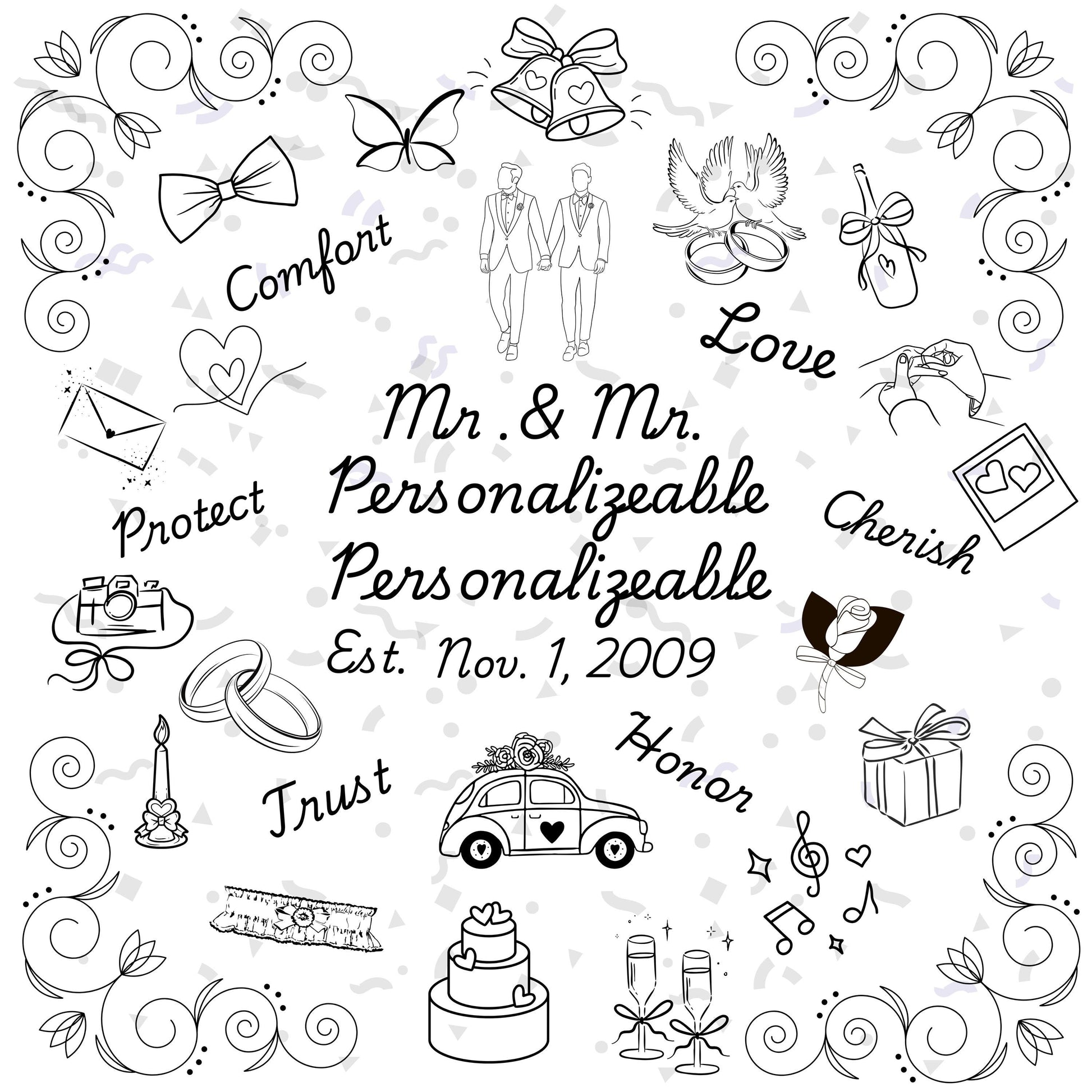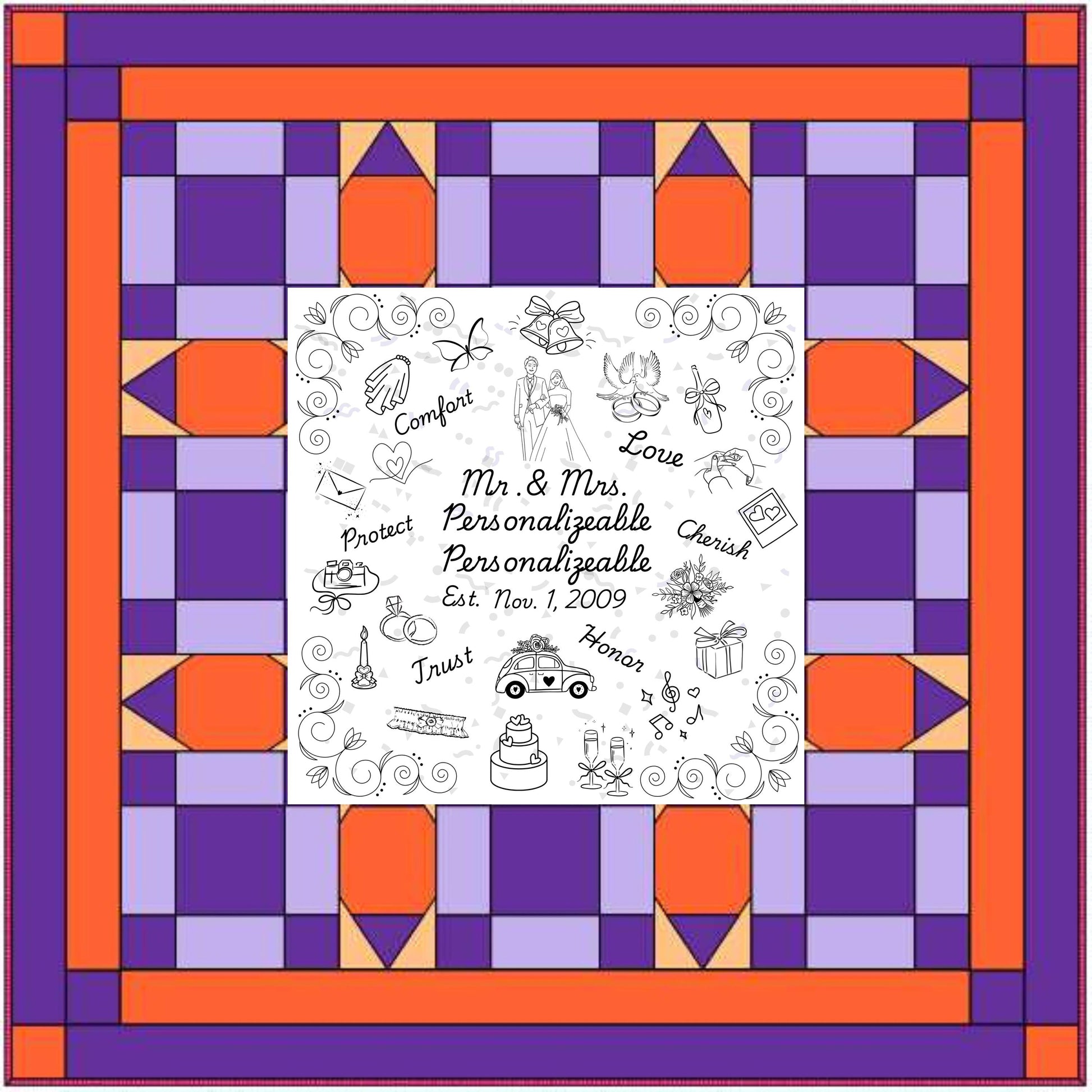 Personalized Wedding Quilt Panel: Mr. & Mrs. Cotton Fabric, Multi-Gender